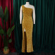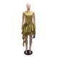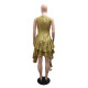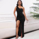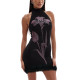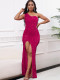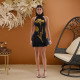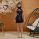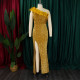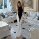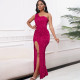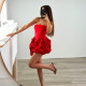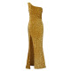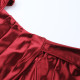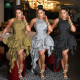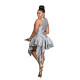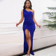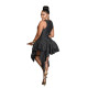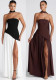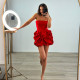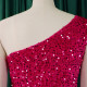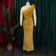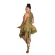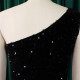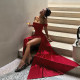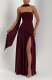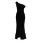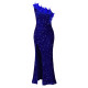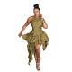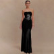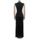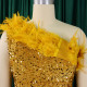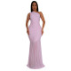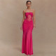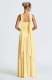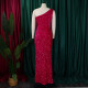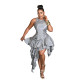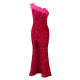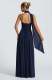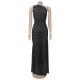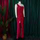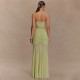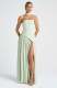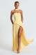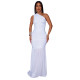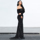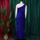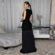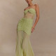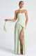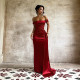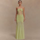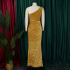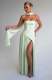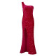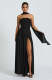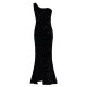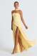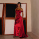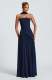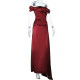 An evening dress or gown is a long flowing dress usually worn at formal occasions. The drop ranges from ballerina (mid-calf to just above the ankles), tea (above the ankles), to full-length. Evening dresses are usually made of luxurious fabrics such as chiffon, velvet, satin, organza, etc. An evening gown can be any silhouette—sheath, mermaid, A-line, or trumpet shaped—and may have straps, halters or even sleeves.